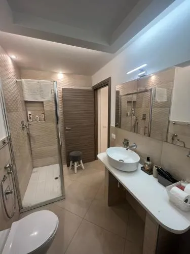 Bollitore tè/macchina caffè, Doccia, TV, Aria condizionata, Asciugacapelli, Ferro da stiro, Angolo cottura, Balcone, Frigorifero, Zona soggiorno, Prodotti da bagno in omaggio, WC, Forno a microonde, Lavatrice, Bagno privato, Riscaldamento, Canali satellitari, Cucina, Vasca o doccia, TV a schermo piatto, Ingresso indipendente, Divano, Vista, Zona pranzo, Utensili da cucina, Armadio o guardaroba, Piano cottura, Prodotti per le pulizie, Macchina da caffè, Terrazza, Asciugamani, Biancheria per la casa, Tavolo da pranzo, Intera unità situata al piano terra, Piani superiori accessibili solo tramite scale, Indipendente, Appartamento privato in edificio, Stand appendiabiti, Stendibiancheria, Carta igienica, Divano letto, Teli, Bottiglia d'acqua, Cioccolatini o biscotti, Pattumiere, Calici da vino, Lettini e culle per bambini, Shampoo, Balsamo, Bagnoschiuma, Presa elettrica vicino al letto, Vista su strada tranquilla, Accesso con chiavi, Aria condizionata indipendente in ogni alloggio