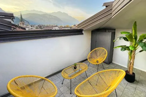 Bollitore tè/macchina caffè, Vasca, TV, Aria condizionata, Asciugacapelli, Angolo cottura, Frigorifero, Scrivania, Zona soggiorno, Prodotti da bagno in omaggio, WC, Lavastoviglie, Lavatrice, Bagno privato, Riscaldamento, Cucina, TV a schermo piatto, Divano, Vista, Parquet o pavimento in legno, Zona pranzo, Bollitore elettrico, Utensili da cucina, Armadio o guardaroba, Forno, Piano cottura, Bidet, Vista montagna, Vista luogo di interesse, Prodotti per le pulizie, Macchina da caffè, Vista città, Terrazza, Asciugamani, Biancheria per la casa, Tavolo da pranzo, Arredamento da esterno, Piani superiori accessibili tramite ascensore, Stand appendiabiti, Stendibiancheria, Carta igienica, Divano letto, Bottiglia d'acqua, Frutta, Cioccolatini o biscotti, Calici da vino, Lettini e culle per bambini, Shampoo, Bagnoschiuma, Presa elettrica vicino al letto, Cuscino non di piume, Alloggio accessibile tramite ascensore, Aria condizionata indipendente in ogni alloggio