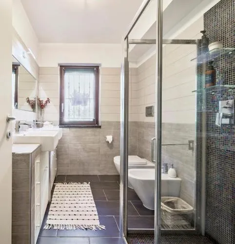 Bollitore tè/macchina caffè, Doccia, Cassaforte, TV, Asciugacapelli, Frigorifero, Scrivania, Ferro e asse da stiro, Zona soggiorno, Ventilatore, WC, Lavastoviglie, Patio, Bagno privato, Riscaldamento, Cabina armadio, Cucina, Disponibilità di camere comunicanti, TV a schermo piatto, Ingresso indipendente, Divano, Pavimento in marmo o in piastrelle, Zona pranzo, Bollitore elettrico, Utensili da cucina, Zanzariera, Armadio o guardaroba, Forno, Piano cottura, Tostapane, Bidet, Vista giardino, Prodotti per le pulizie, Macchina da caffè, Asciugamani, Biancheria per la casa, Tavolo da pranzo, Arredamento da esterno, Zona pranzo all'aperto, Intera unità situata al piano terra, Stand appendiabiti, Letto pieghevole, Stendibiancheria, Carta igienica, Giochi da tavolo/puzzle, Bottiglia d'acqua, Cioccolatini o biscotti, Pattumiere, Calici da vino, Lettini e culle per bambini, Shampoo, Balsamo, Bagnoschiuma, Cuffia da doccia, Presa elettrica vicino al letto, Cuscino non di piume, Vista cortile interno, Servizio streaming (per es. Netflix), Estintori, Gel igienizzante per le mani