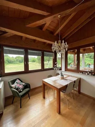 Featuring a private entrance, this air-conditioned holiday home consists of 1 living room, 1 separate bedroom and 1 bathroom with a shower and a bidet. The well-fitted kitchen features a stovetop, a refrigerator, a dishwasher and kitchenware. Boasting a terrace with garden views, this holiday home also provides a washing machine and a flat-screen TV. The unit offers 2 beds.