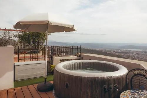 The pool with a view and hot tub are the special features of this villa. Boasting a private entrance, this air-conditioned villa includes 1 living room, 1 separate bedroom and 1 bathroom with a shower and a bidet. Guests will find a stovetop, a refrigerator, kitchenware and an oven in the kitchen. The villa also features a barbecue. The villa offers a flat-screen TV with streaming services, a washing machine, a tea and coffee maker, a seating area as well as sea views. The unit has 2 beds.