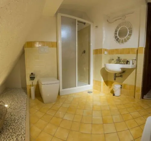 The spacious triple room offers air conditioning, a coffee machine, a terrace with sea views as well as a private bathroom featuring a shower. The unit offers 2 beds.