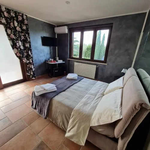 Ampia camera matrimoniale dotata di aria condizionata, ingresso indipendente, terrazza con vista sul giardino e bagno privato con vasca. L’alloggio presenta 1 letto.