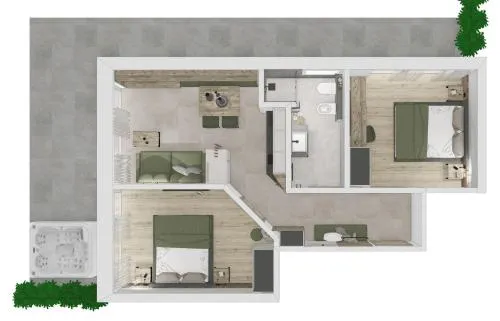 The hot tub and sauna are the standout features of this apartment. Boasting a private entrance, this apartment features 1 living room, 2 separate bedrooms and 1 bathroom with a walk-in shower and a bidet. Meals can be prepared in the well-fitted kitchen, which features a stovetop, a refrigerator, a dishwasher and kitchenware. Featuring a terrace with garden views, this apartment also features soundproof walls and a flat-screen TV. The unit has 3 beds.