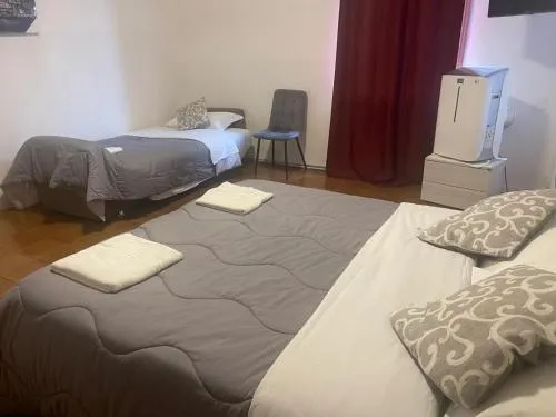 The triple room provides air conditioning, a seating area, as well as a shared bathroom featuring a shower and a hairdryer. The fully equipped kitchen features a stovetop, a refrigerator, an oven and a microwave. A sofa, a flat-screen TV, a wardrobe and heating are provided in this triple room. The unit offers 2 beds.