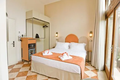 Ampia camera matrimoniale/doppia con letti singoli climatizzata e provvista di minibar e bagno privato con doccia a filo pavimento e bidet. Questa sistemazione matrimoniale/doppia con letti singoli è dotata di TV a schermo piatto, armadio, cassaforte, pavimento piastrellato e vista sul giardino.