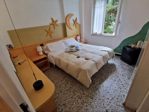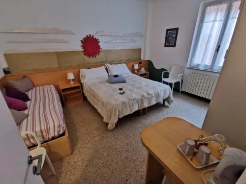 Camera matrimoniale/doppia con letti singoli dotata di aria condizionata, armadio, balcone affacciato su una strada tranquilla e bagno privato con doccia. L’alloggio presenta 1 letto.