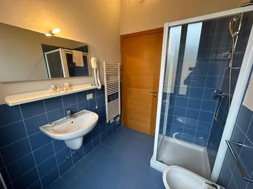 Camera quadrupla dotata di bagno privato con doccia, bidet, asciugacapelli e set di cortesia. La sistemazione dispone di aria condizionata, armadio, pavimento piastrellato e vista su un cortile interno. L’alloggio presenta 3 letti.