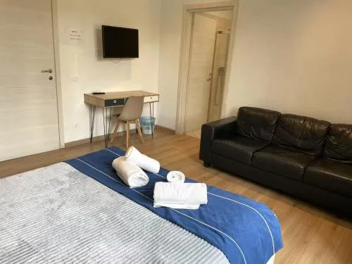 The quadruple room features a private bathroom, air conditioning, soundproof walls, as well as a seating area with a flat-screen TV. Guests can make meals in the kitchen that is equipped with a refrigerator, kitchenware, a microwave and an electric kettle. The quadruple room provides a wardrobe, a tiled floor, heating, a TV, as well as city views. The unit offers 3 beds.