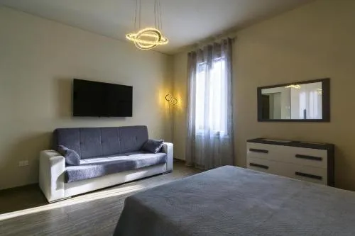 Doccia, Canali pay per view, TV, Aria condizionata, Asciugacapelli, Ferro da stiro, Zona soggiorno, Prodotti da bagno in omaggio, WC, Patio, Bagno privato, Riscaldamento, Canali via cavo, Vasca o doccia, Servizi igienici aggiuntivi, TV a schermo piatto, Divano, Pavimento in marmo o in piastrelle, Vista, Zanzariera, Armadio o guardaroba, Bidet, Vista giardino, Terrazza, Asciugamani, Biancheria per la casa, Intera unità situata al piano terra, Carta igienica, Divano letto, Doccia a filo pavimento, WC rialzato, Pattumiere, Lettini e culle per bambini, Shampoo, Bagnoschiuma, Presa elettrica vicino al letto, Cuscino ipoallergenico, Vista cortile interno, Servizio streaming (per es. Netflix), Allarme antifumo, Estintori, Rilevatore di monossido di carbonio, Purificatori d'aria, Aria condizionata indipendente in ogni alloggio