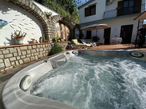 Guests will have a special experience as this holiday home offers a private pool, a hot tub and a fireplace. Featuring a private entrance, this air-conditioned holiday home comprises 1 living room, 2 separate bedrooms and 2 bathrooms with a shower and a bidet. The fully equipped kitchen features a stovetop, a refrigerator, kitchenware and an oven. Boasting a balcony with garden views, this holiday home also provides a tea and coffee maker and a TV. The unit offers 3 beds.