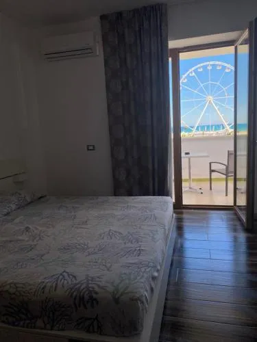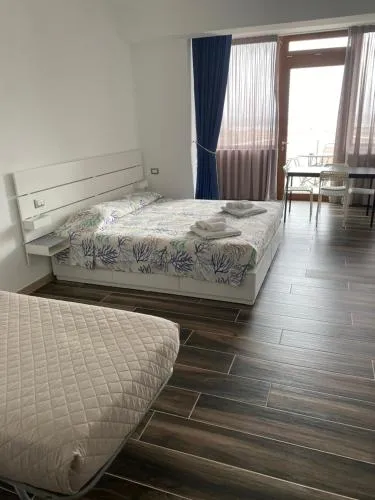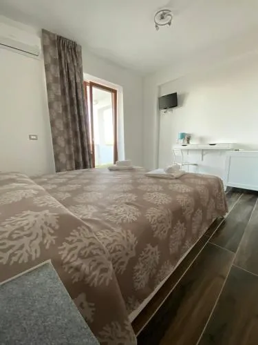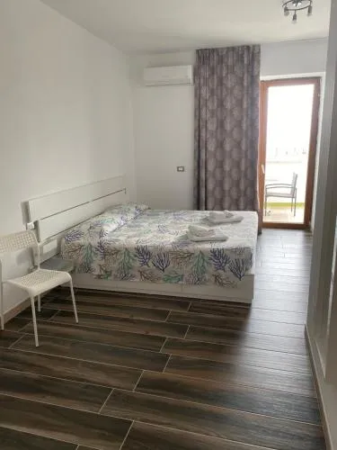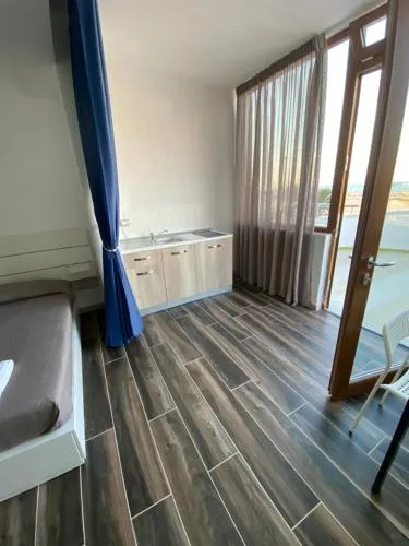 L’angolo cottura è ben attrezzato con fornelli, frigorifero e utensili da cucina. Questa camera familiare climatizzata dispone inoltre di armadio, balcone con vista sul mare e bagno privato con doccia. L'alloggio presenta 3 letti.