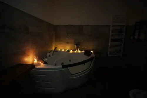 Guests will have a special experience as this double room features a hot tub. The double room includes a private bathroom, well-fitted with a bath, a shower, a bidet, a hairdryer and slippers. The well-fitted kitchen features a stovetop, a refrigerator, kitchenware and an electric kettle. The spacious air-conditioned double room offers a flat-screen TV with streaming services, a private entrance, a minibar, a seating area as well as garden views. The unit offers 2 beds.